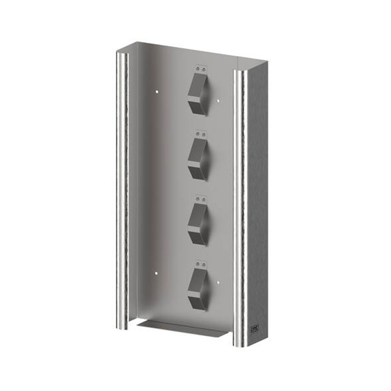 De CMT Swoosh handschoen wandhouder Quattro is een duurzame en praktische oplossing voor het opbergen van vier dispensers. Gemaakt van hoogwaardig roestvrij staal, biedt deze houder een moderne uitstraling en een lange levensduur. Met een verstelbare breedte past hij zich eenvoudig aan verschillende dispenserformaten aan. Dankzij de compacte afmetingen van 8,6 x 20,8 x 51,2 cm is hij ruimtebesparend en ideaal voor professionele omgevingen waar hygiëne belangrijk is. Deze houder combineert functionaliteit en duurzaamheid voor een georganiseerde werkplek