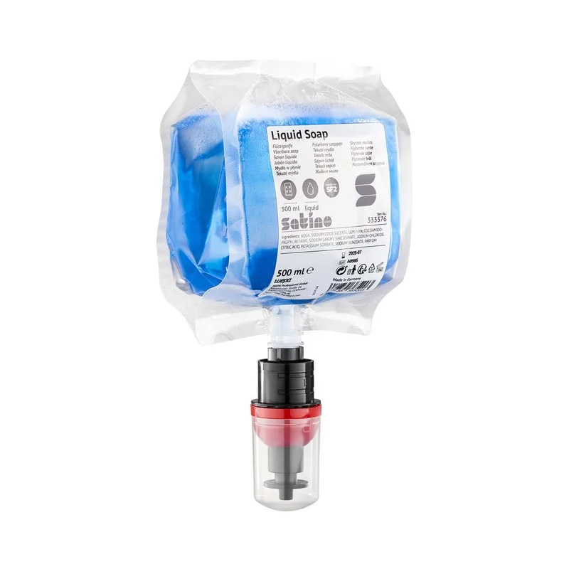 - Gebruiksvriendelijke, bijzonder hygiënische stand-up pouch: gesloten systeem met geïntegreerde pomp, optimale restlediging en laag afvalgewicht