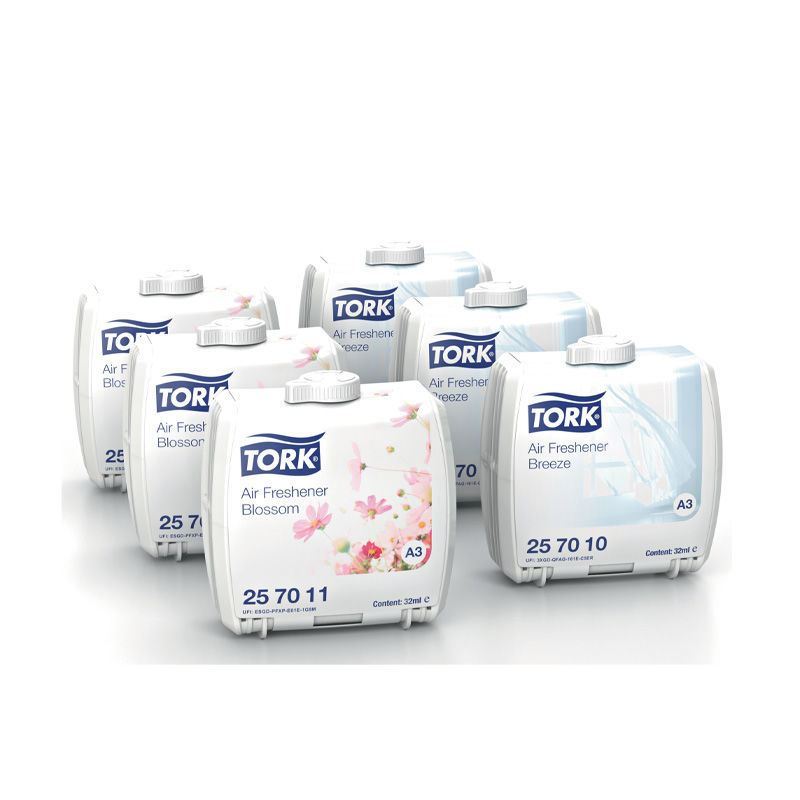 Tork Constante Luchtverfrissing Dispenser uit de Tork Elevation-lijn gebruikt een unieke, hightech distributietechnologie voor het voortdurend en gelijkmatig verspreiden van geur. Gecertificeerd "gebruiksvriendelijk" voor eenvoudig bijvullen. Verkrijgbaar in drie zorgvuldig geselecteerde geuren, Lentebries, Bloesem en Geurneutraliserend, voor langdurige, continue frisheid in elke sanitaire ruimte.