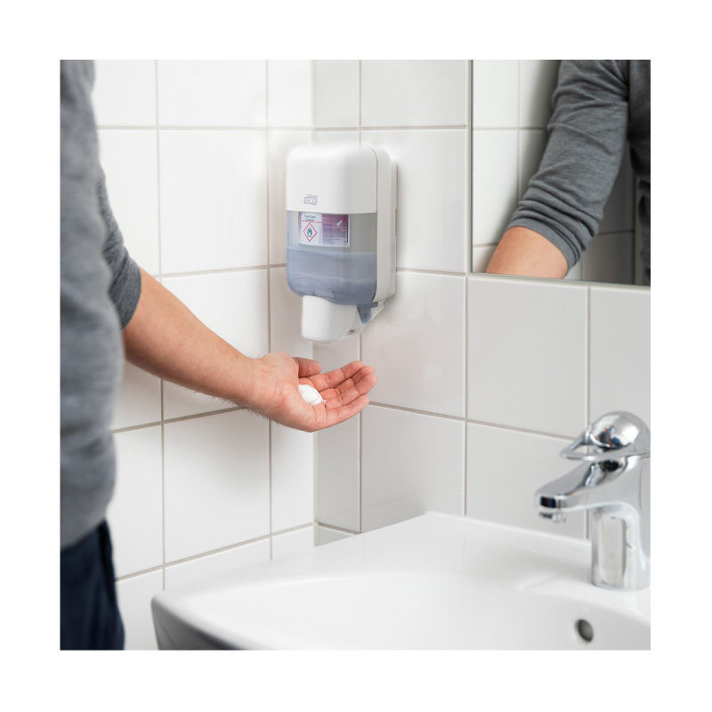 Verzorgt de normale en droge huid bij dagelijks handen wassen. Tork Mild Geparfumeerde Vloeibare Handzeep heeft een frisse geur en bevat hydraterende en verzorgende ingrediënten voor een zachte handreiniging. Geschikt voor Tork Mini Zeep en Handdesinfectie Dispensers die gecertificeerd zijn als easy-to-use en aan alle gebruikers goede handhygiëne bieden.