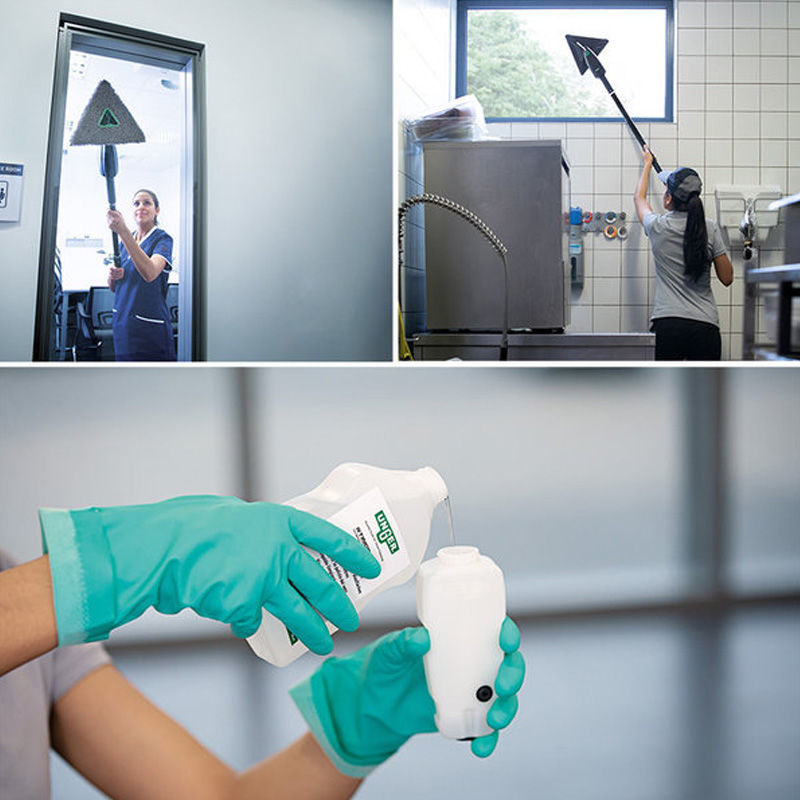 - Voorzien van Microvezel TriPad voor het gelijktijdig reinigen van ramen en kozijnen