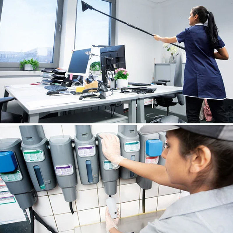 Telescopisch reinigingssysteem voor de binnenramen (max. bereikbare hoogte: 5 meter).