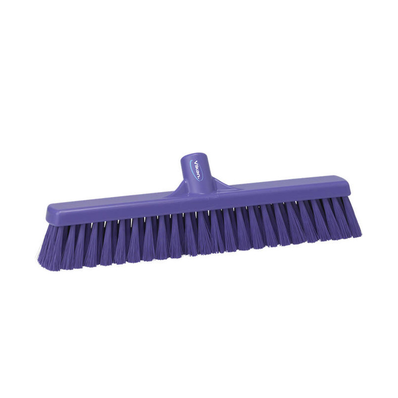 Vikan combiveger van 410 mm met harde en zachte polyester vezels. De harde vezels aan de voorkant van de bezem vegen hardnekkig en zwaarder vuil los, terwijl de zachte vezels aan de achterkant de kleinere vuildeeltjes meenemen. Ideaal voor gebruik in de voedingsindustrie, keukens, restaurants, slagerijen, bakkerijen en andere productieomgevingen.