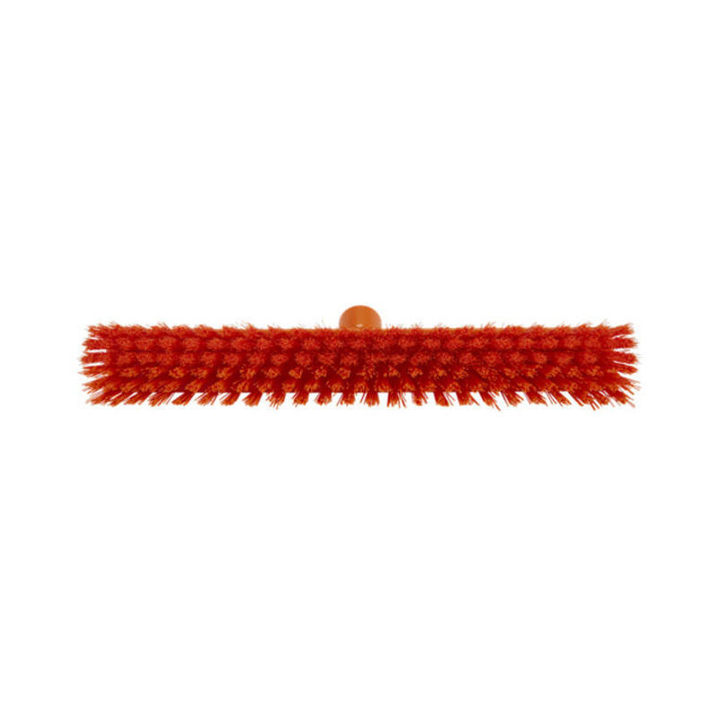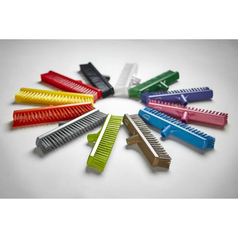 Vikan combiveger van 410 mm met harde en zachte polyester vezels. De harde vezels aan de voorkant van de bezem vegen hardnekkig en zwaarder vuil los, terwijl de zachte vezels aan de achterkant de kleinere vuildeeltjes meenemen.